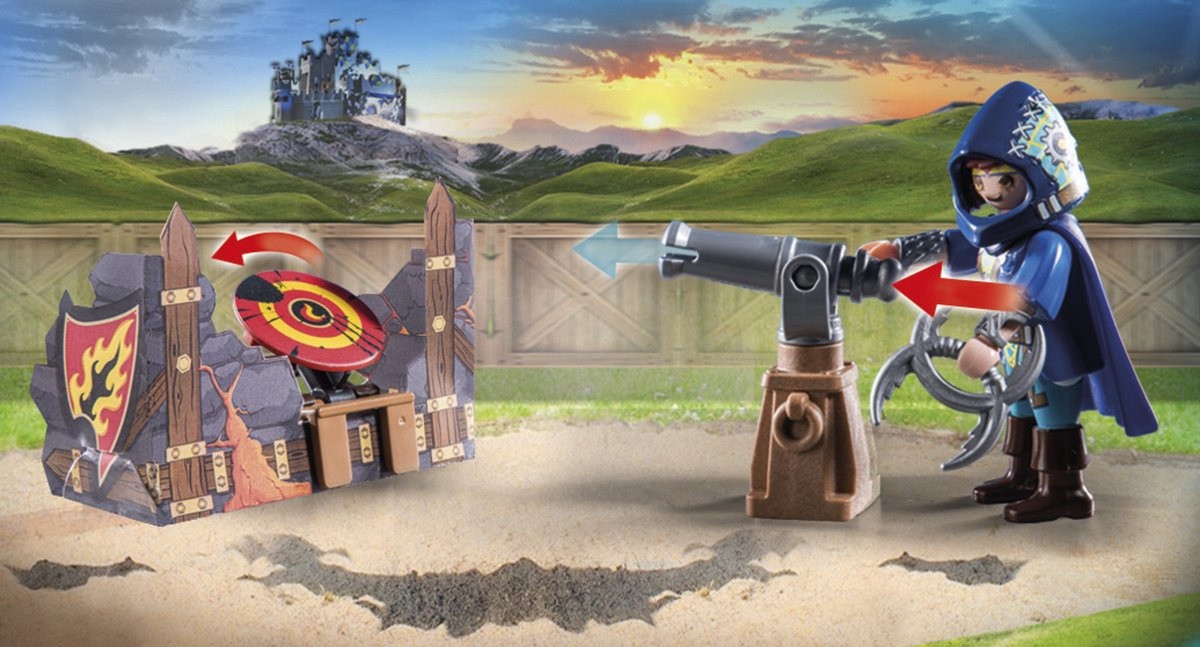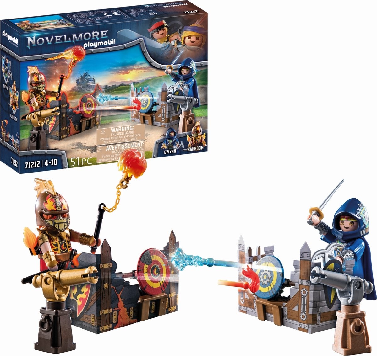 Op naar het spannende ridderduel! Vechter Gwynn geeft tegenwicht met het waterstraalkanon, Kaboom met zijn vuurprojectiel. Elke partij probe
