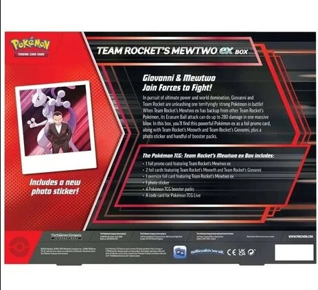 Op zoek naar ultieme macht en wereldheerschappij zetten Giovanni en Team Rocket een angstaanjagend sterke Pokemon in de strijd! Wanneer Team Rockets Mewtwo ex wordt ondersteund door andere Team Rocket Pokemon, kan zijn Erasure Ball aanval met één enorme klap tot wel 280 schade aanrichten. In deze Pokemon doos vind je deze krachtige Pokemon ex als folie promotiekaart, samen met Team Rockets Meowth en Team Rockets Giovanni, plus een fotosticker en een aantal boosterpacks.