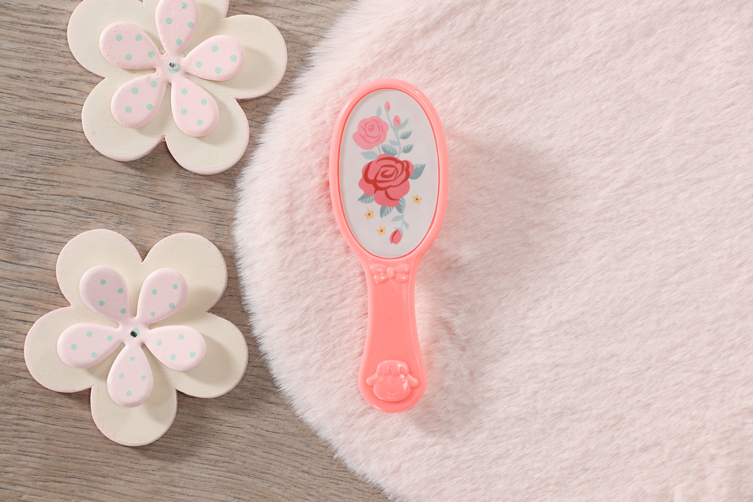 “Niet bewegen, Sophia, er zit een vlinder in je haar!” O wacht, het is maar de vlinder van haar haarband. Je kunt haar haar van hoge kwaliteit steeds weer opnieuw stylen en borstelen met de roze haarborstel. Deze kleine fan van rozen houdt het meest va