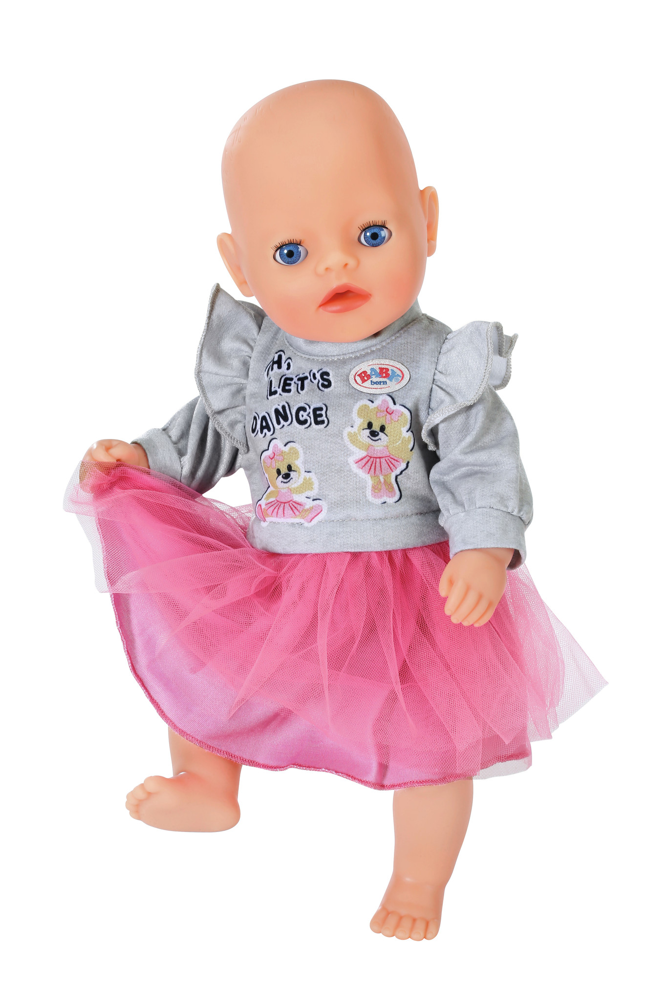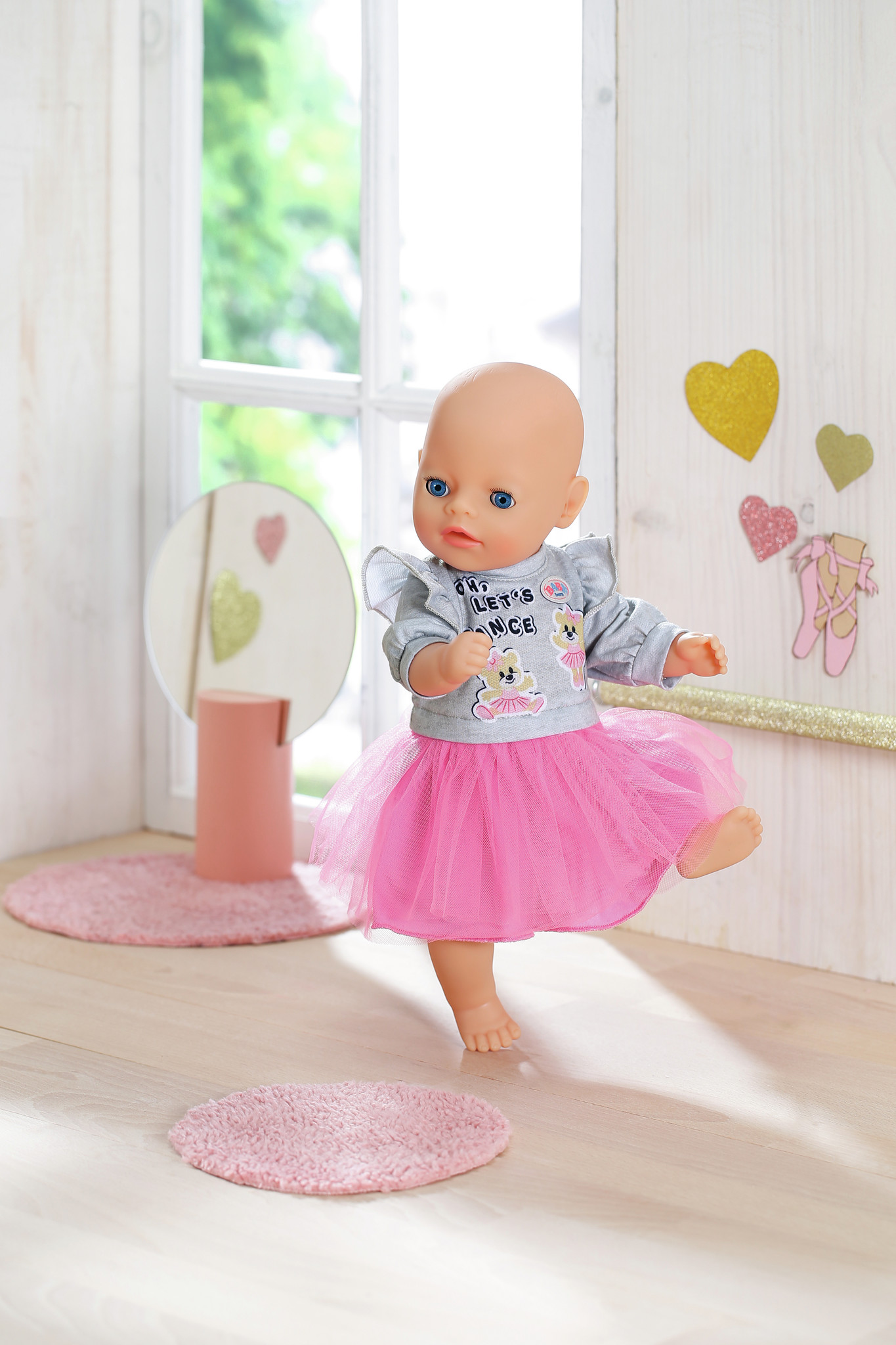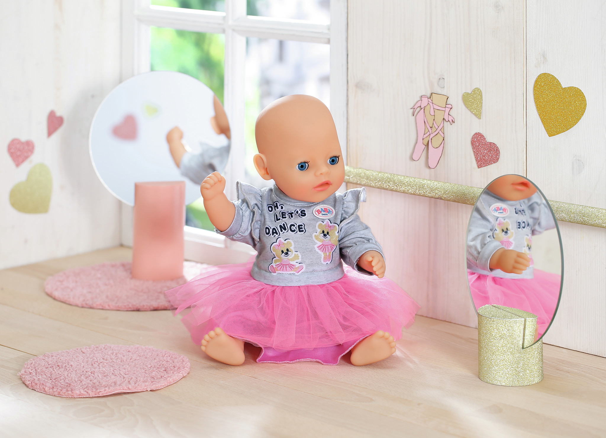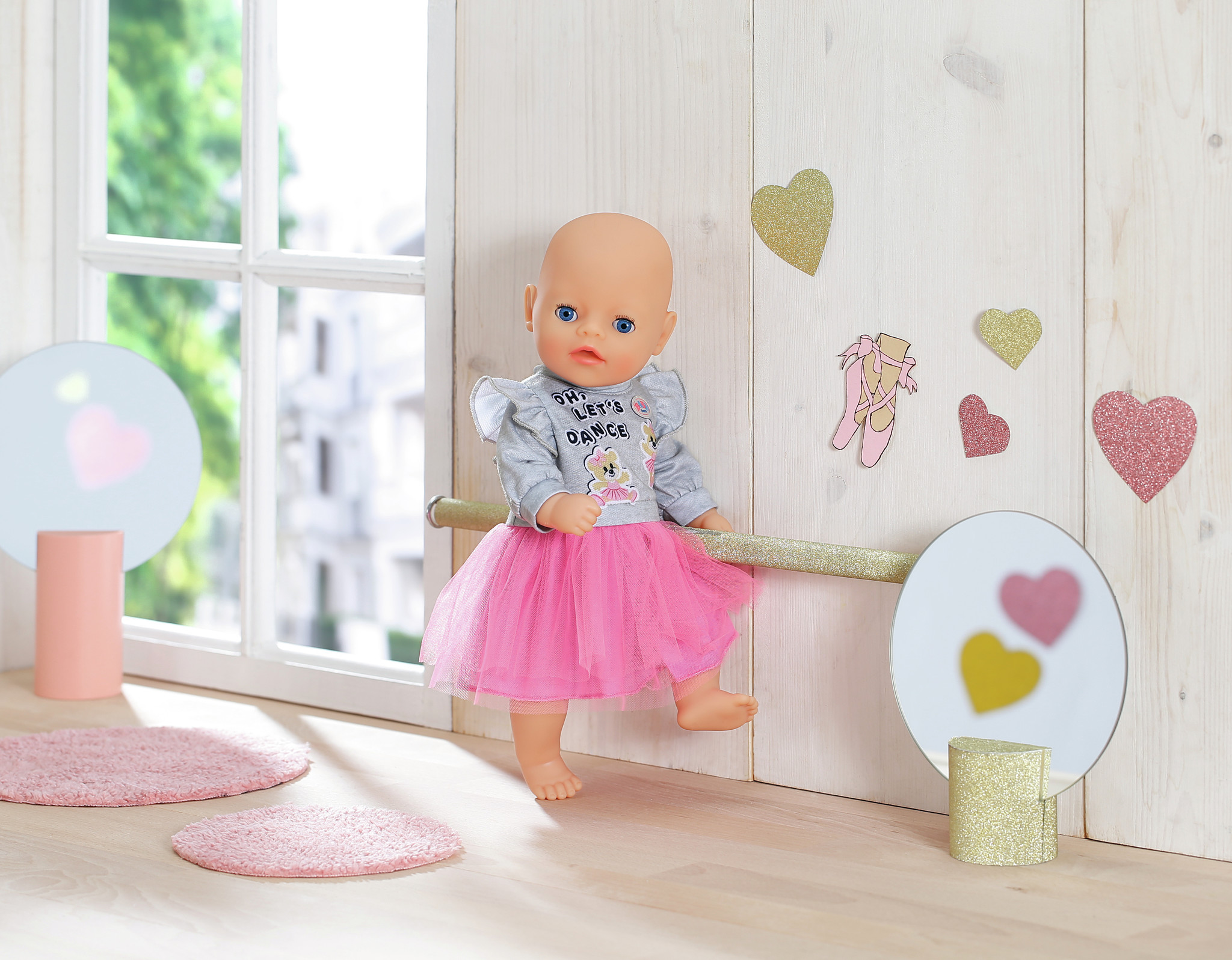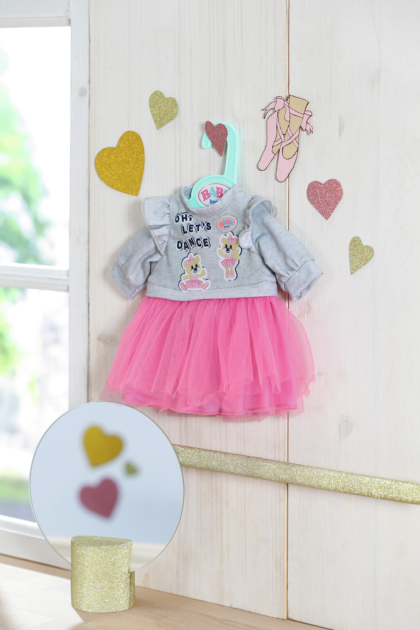 Soms kan BABY born Little gewoon niet stilzitten. En waarom zou ze ook? Dansen is tenslotte dromen met je voeten. De kleine danseres maakt een pirouette in de coole jurk met mouwen met ruches en een roze tulen rok. De jurk is zo ontworpen dat zelfs de
