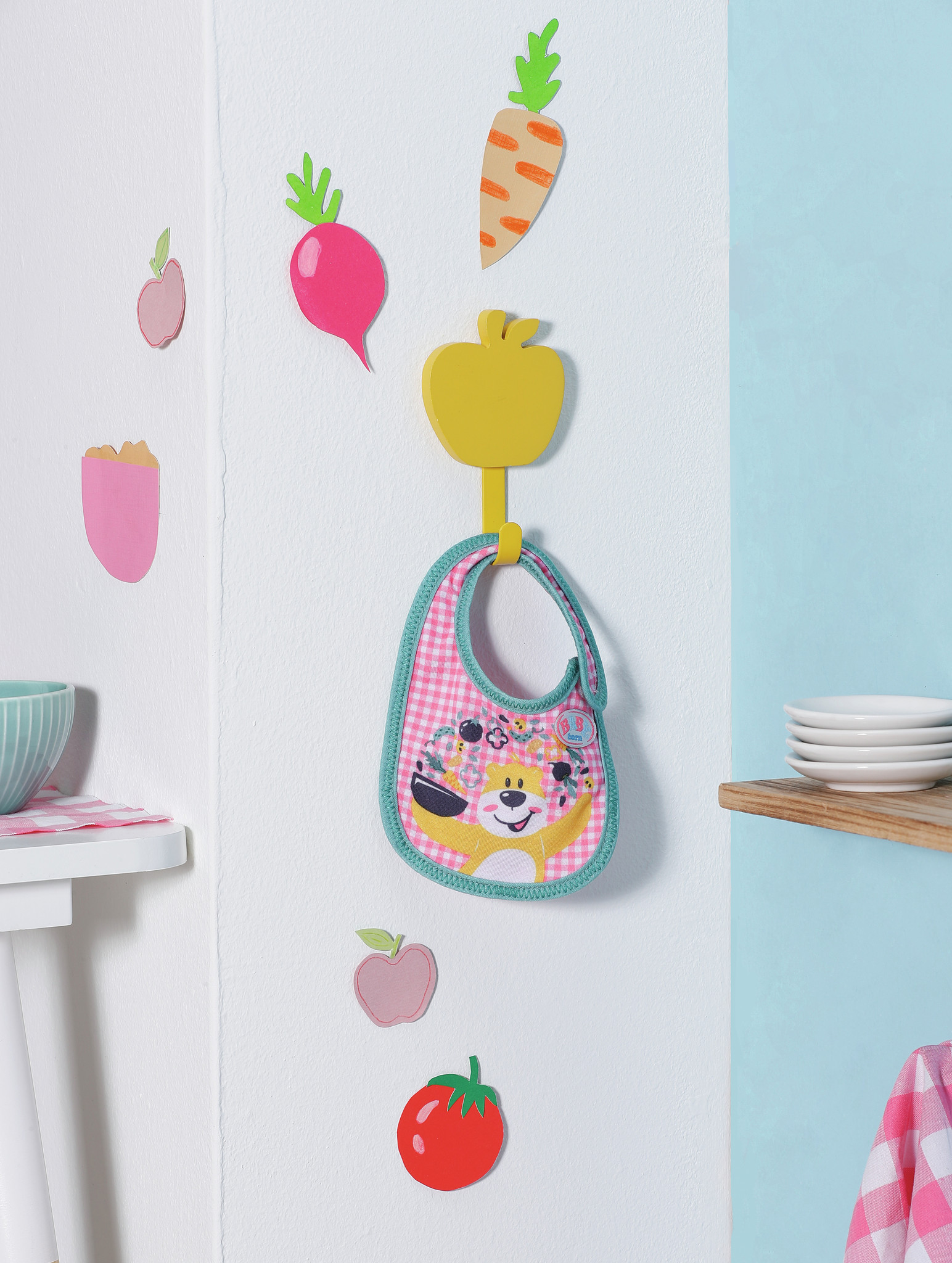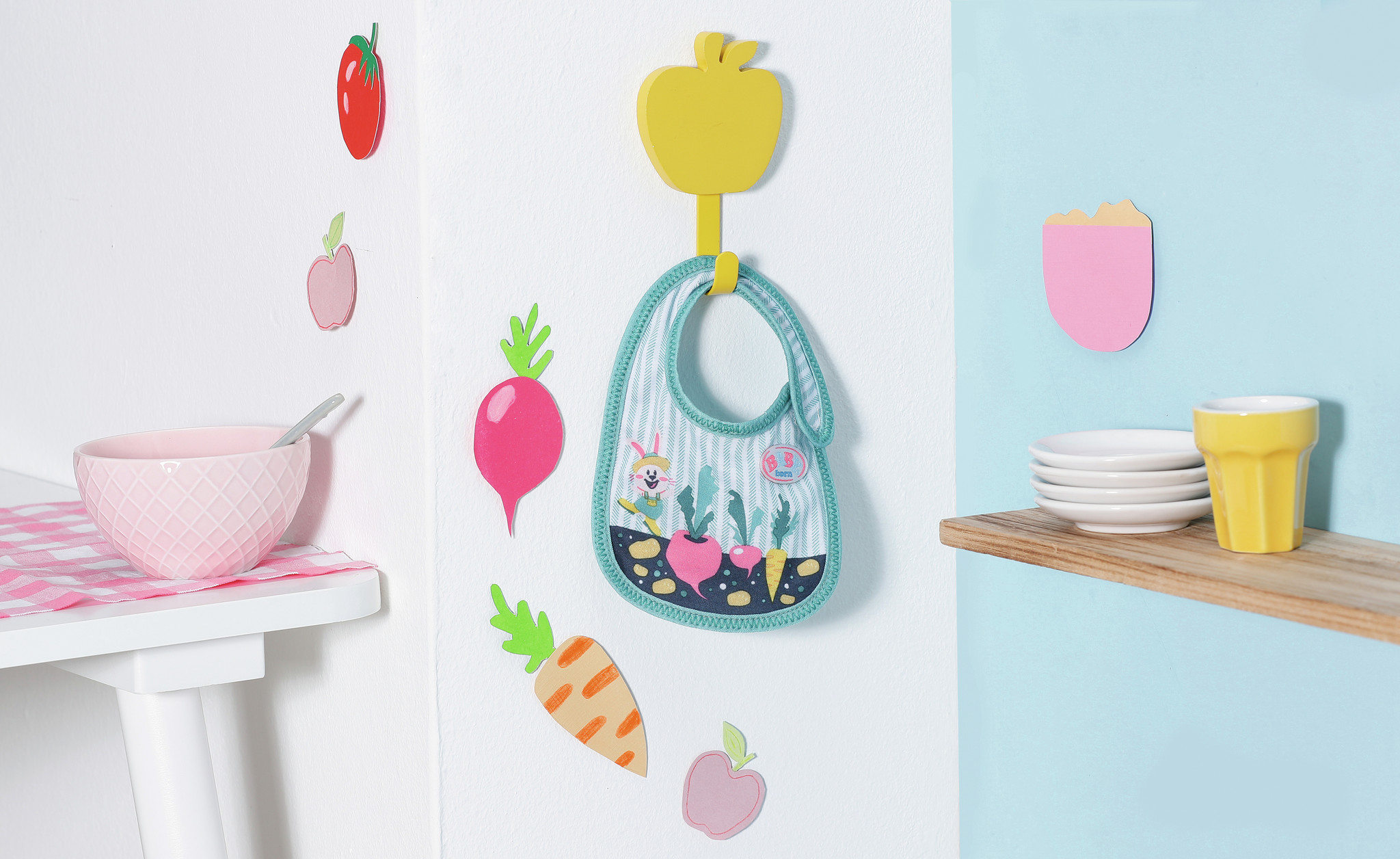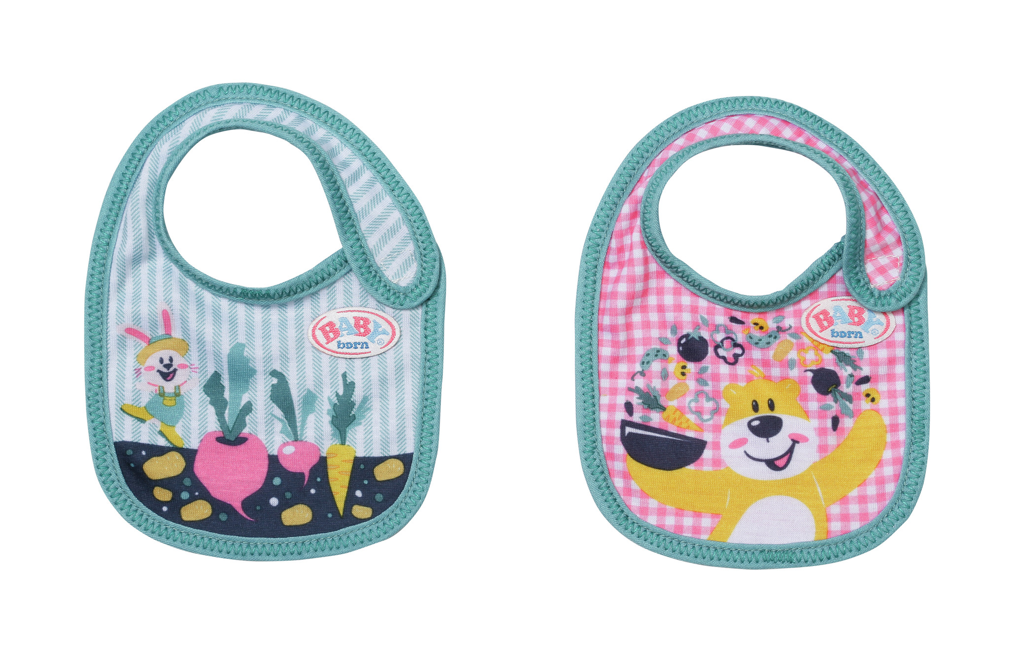 Wat een dilemma. BABY born heeft twee slabbetjes en kan maar niet kiezen welke ze om wil voor de lunch. Op het slabbetje met groene strepen huppelt Benno het konijn blij rond tussen de wortels en bieten. Op het geruite exemplaar tovert chef Bruno de beer een groentesoep tevoorschijn. Hopelijk kan het kleintje sneller beslissen wat ze wil eten… – Accessoires van topkwaliteit voor de BABY born-pop. – Voor verbeterd, gevarieerd en langdurig speelplezier. – Ook geschikt voor kleinere poppen. BABY born Slabbetje (43 cm) in twee verschillende uitvoeringen. Morsende eters zijn welkom. Met twee slabbetjes is het niet erg als je eten morst.