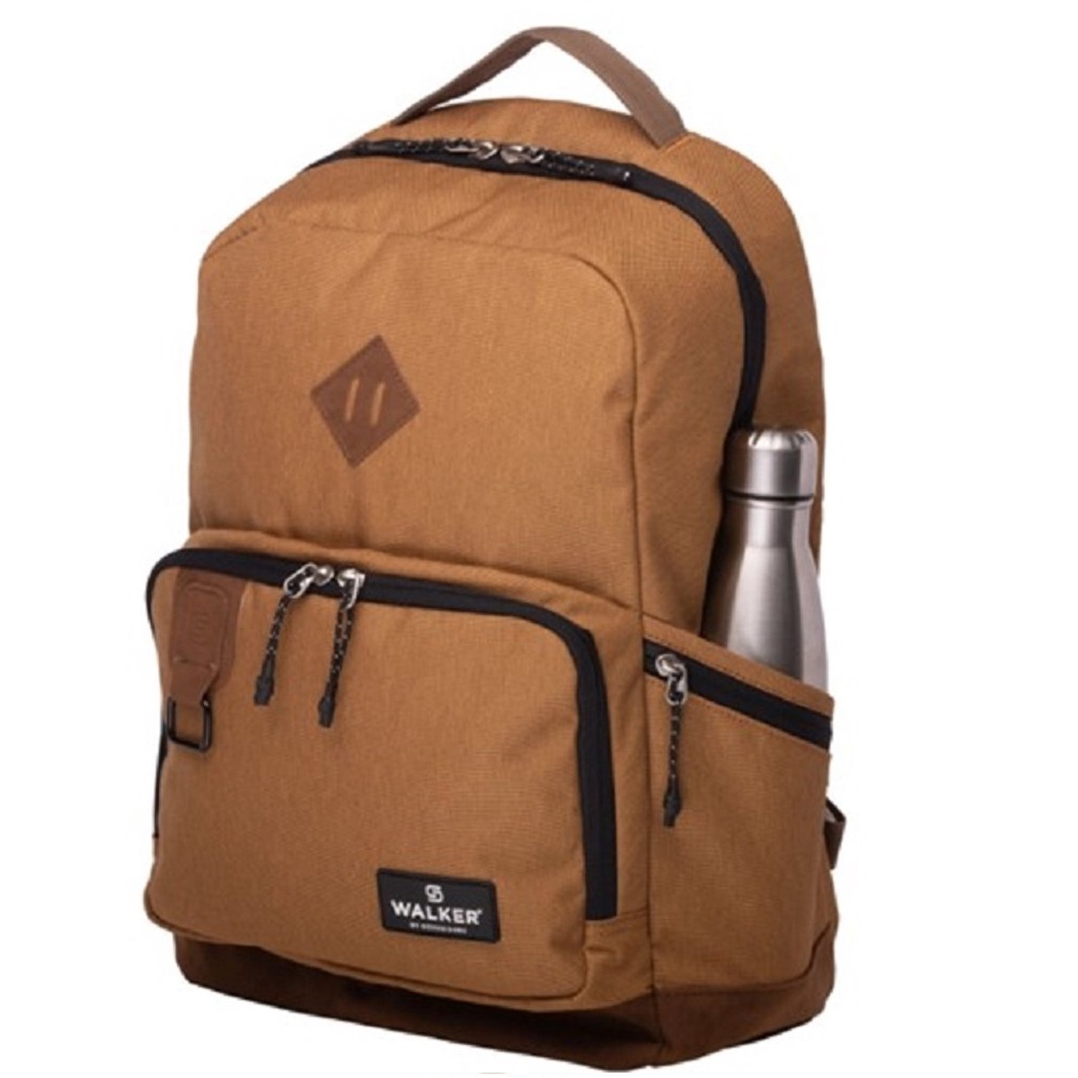 Rugzak – Reizen – Back to school – Wandelen – Pure Eco van Walker – Vegan – Onderkant PU-leder – Peanut, Cognac bruin