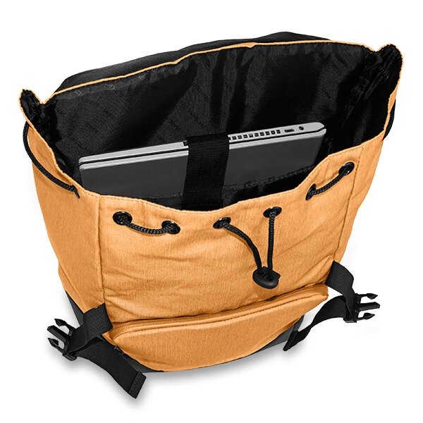 Hoofdvak met trekkoord en beschermd door een klep met 2 kunststof gespen