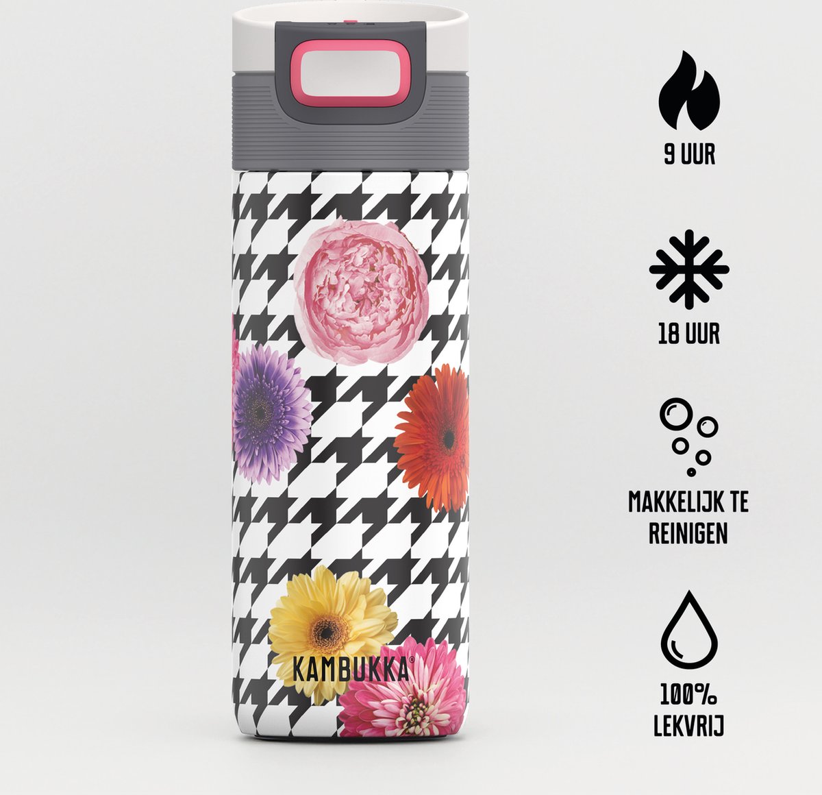 Thermosbeker KAMBUKKA Etna 500ml – Floral Patchwork dubbelwandig met 3 in 1