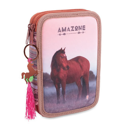Handige en leuke gevulde paarden etui van Amazone. In de etui zit een gum, liniaal van 15cm, puntenslijper, 2 potloden, 8 kleurpotloden & 16 viltstiften. Formaat 21 x 15 x 6 cm