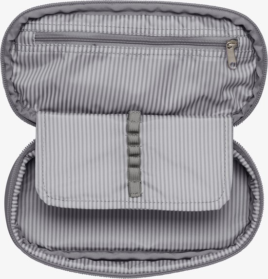 De ovale etui is ruim, heeft een apart vak voor de meest gebruikte pennen en potloden en een intern ritsvak.