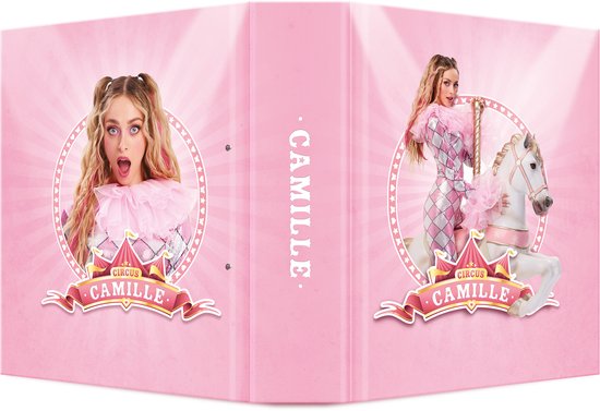 Camille classeur in A4 formaat met rug van 8 cm. Buitenzijde in glad laminaat en full color bedrukking met prachtige foto’s van de Camille Circus collectie. Binnenzijde full color bedrukking.