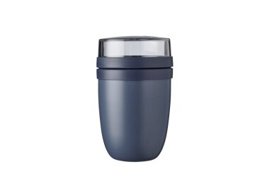 Altijd tijd tekort in de ochtend? Herkenbaar. Neem voor onderweg de isoleer lunchpot Ellipse in Nordic denim mee met frisse yoghurt en granola (handig, want die blijft lekker knapperig in de deksel!). In de dubbelwandige roestvrij stalen pot blijft je