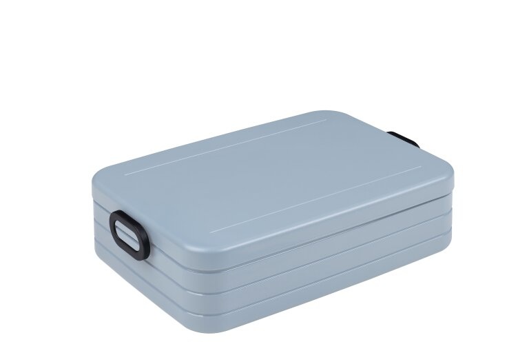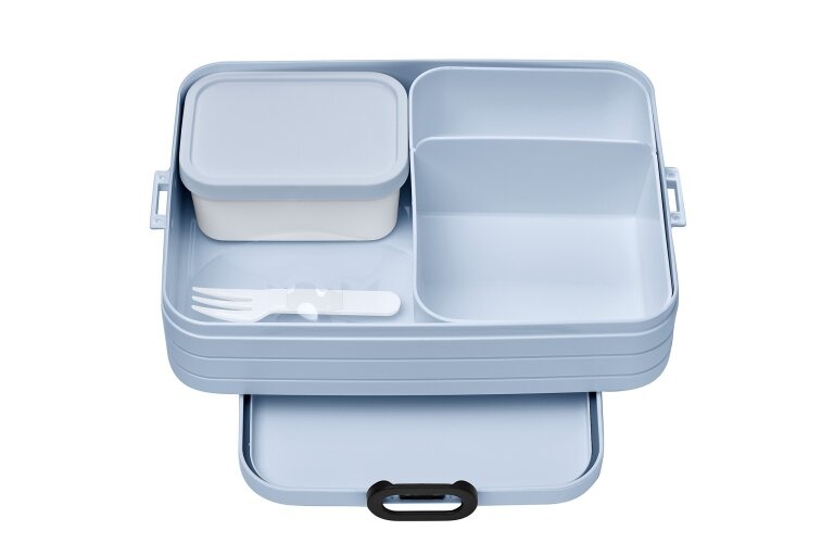 Bento lunchbox Take a Break large in de kleur Nordic blue, inclusief bento boxjes. Nog restjes over van gisteren? Neem ze gerust mee onderweg. Met twee aparte vakken, plus een extra box met vorkje, houdt de Bento in jouw lunchbox je (hartige) lunch alt
