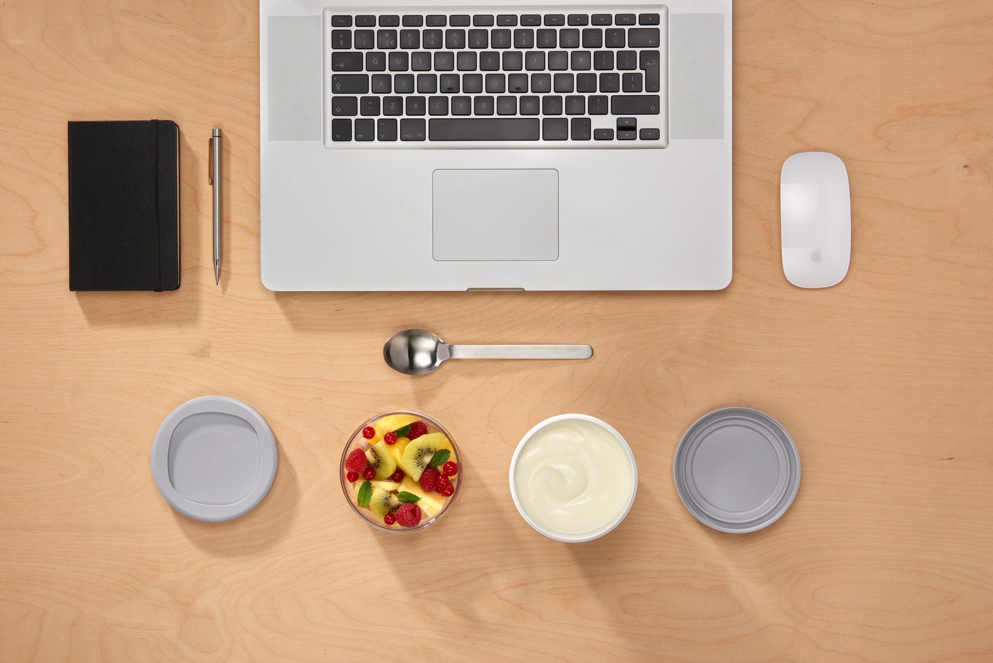 De beide containers hebben een aparte deksel en blijven daarom ook schoon. Bovendien passen de deksels op beide containers, dus je hoeft ’s ochtends niet op zoek naar de juiste deksel. De inhoud van de bovenste transparante container is 200 ml, dit betekent dat er ongeveer 75 gram muesli of fruit in past. De capaciteit van de onderste container is 500 ml, genoeg voor een royale portie soep, noedels of yoghurt. De lunchpot is gemaakt van duurzaam materiaal en mag gebruikt worden in de vriezer, de magnetron (verwijder wel de deksel) en vaatwasser. De bovenste transparante container mag niet gebruikt worden in de magnetron.
