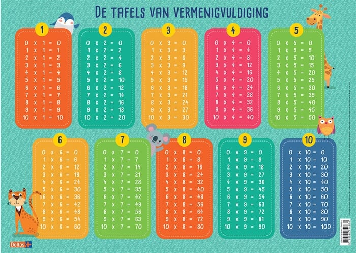 Educatieve onderleggers – De tafels van vermenigvuldiging