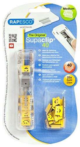 Rapesco Supaclip dispenser (40 papierklemmen) + 25 Emoji clips (geel)