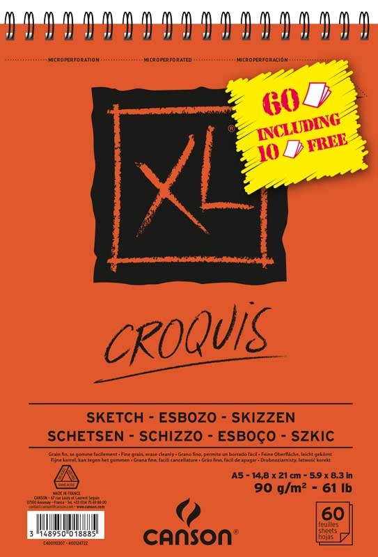 Canson Schetsblok XL A5 (148x210mm) 90gr/60vel - oranje kaft