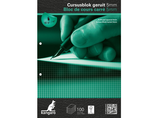 Cursusblok A4/2gaten geruit 5x5mm - 100vel