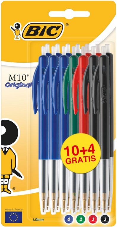 BIC Balpen M10 Medium – assorti (10+4 gratis)