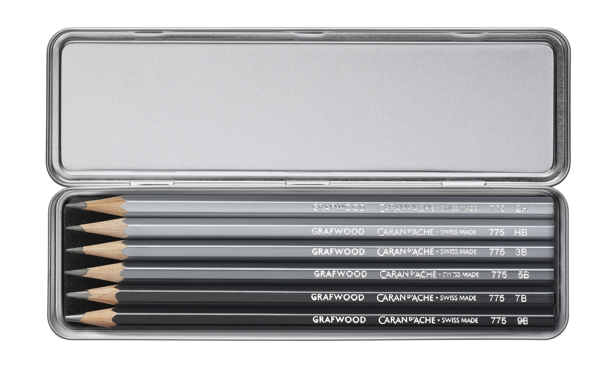 Caran d’Ache Grafietpotlood “Grafwood” – 6stuks in metalen box