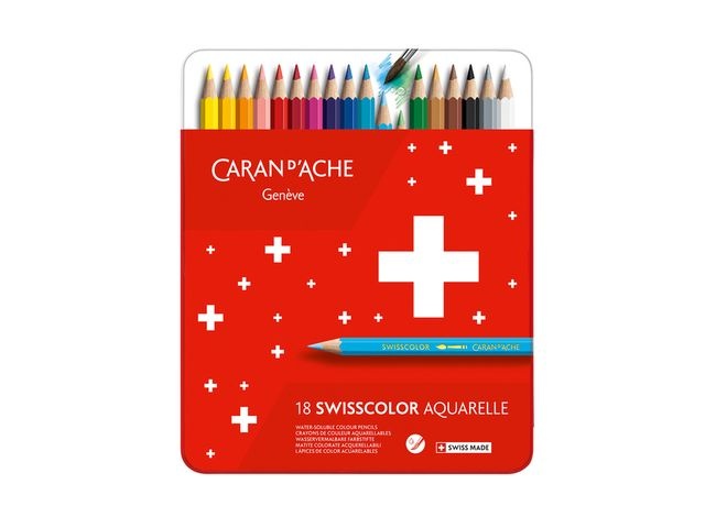 Caran d’Ache Swisscolor Kleurpotlood Aquarel – 18stuks in metalen doos