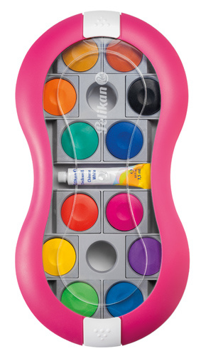Pelikan plakkaatverfdoos (magenta) Space+ met 12 kleuren + tube wit