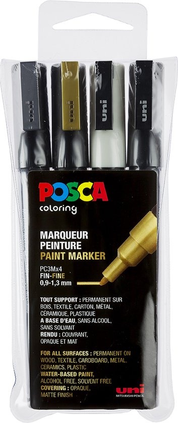 Posca Paint Marker op waterbasis (1,5mm) – 4stuks (metallic kleuren)