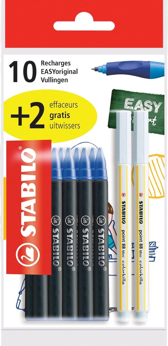 Stabilo EASYoriginal refill M blauw - 10stuks + 2 inktwissers