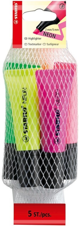 Stabilo NEON – 5stuks (geel/oranje/roze/groen/magenta)
