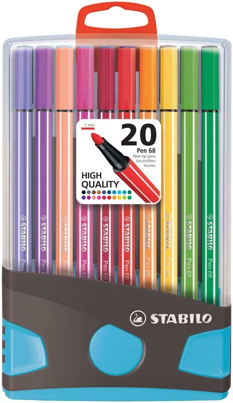 Stabilo Pen 68 ColorParade – Box 20stuks (antraciet/lichtblauw)