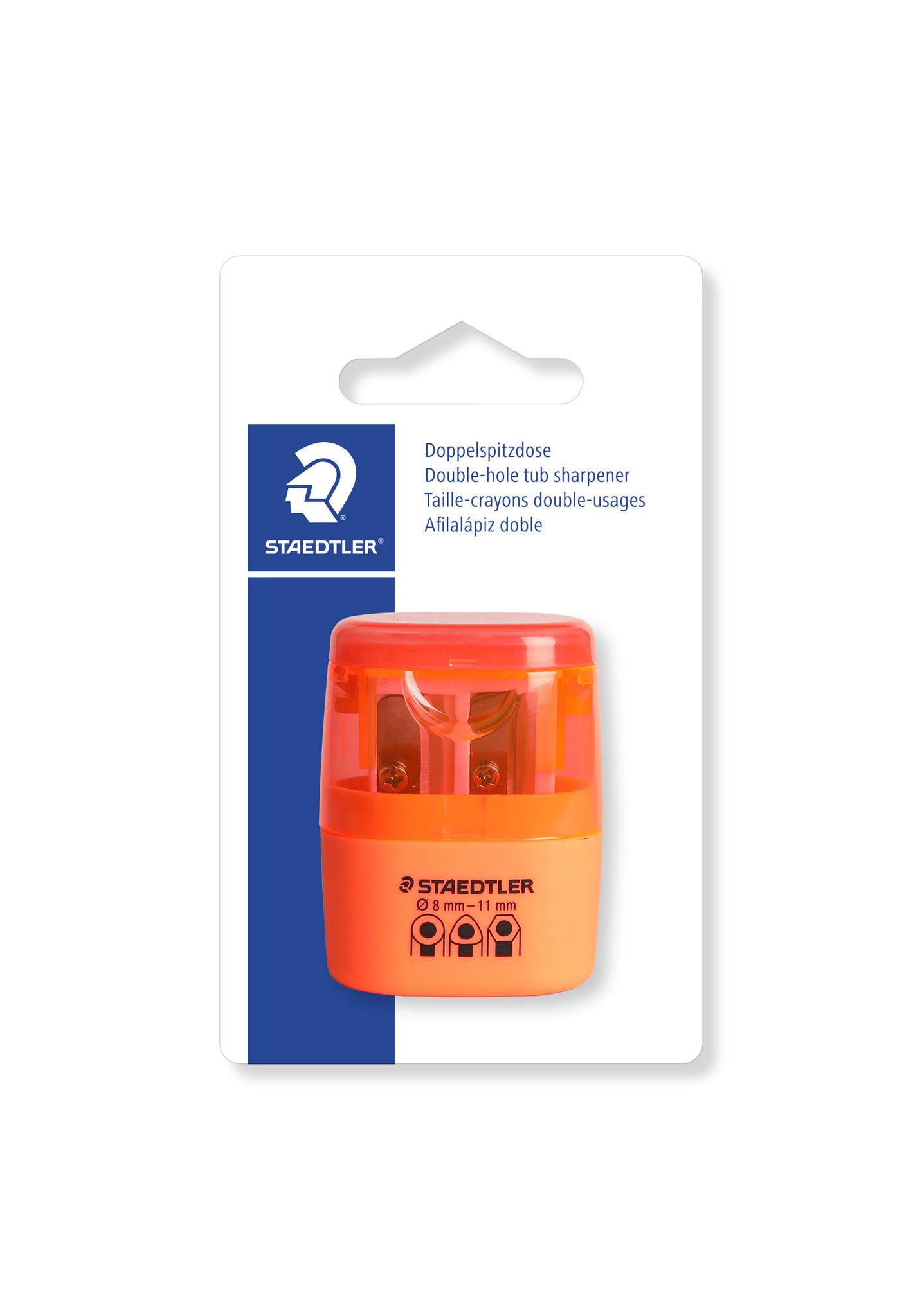 Potloodslijper 2-gaats met opvangbakje – neon oranje