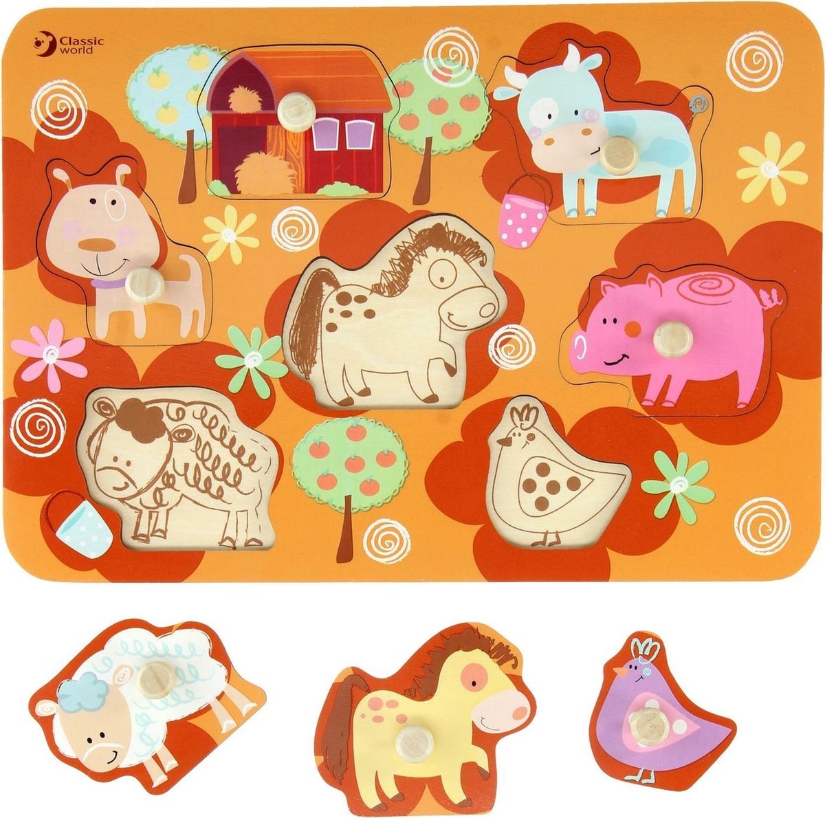 Classic World Knopjespuzzel (hout) - Boerderij
