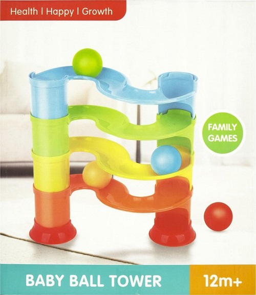 Deze baby knikkerbaan en balspel is er speciaal voor de allerkleinste! De ballen raken de muren en dalen langzaam. 5 ballen met patronen en een handvat om de doos te dragen. Zeer eenvoudig te monteren.