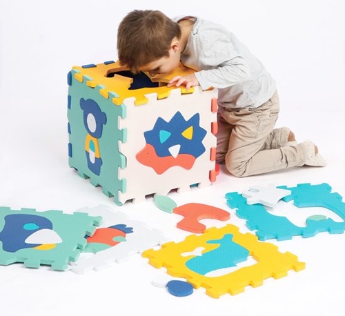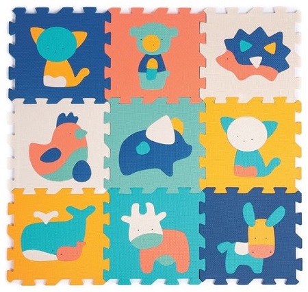 Comfortabel, hygiënisch, kleurrijk en met fijne texturen, de LUDI schuimtegels begeleiden baby bij zijn eerste spelletjes in alle veiligheid! Voor een zacht en kleurrijk leven! Gebaseerd op het thema dieren, isoleren de schuimtegels tegen de kou, absorberen schokken, weerstaan kleine tandjes en stimuleren de fijne motoriek van baby. De 9 foamtegels worden aan elkaar gehangen tot een prachtige speelmat van 90 x 90 cm, ideaal voor baby om op te kruipen of om met zijn favoriete speeltjes te spelen. De tegels zijn stevig en passen goed in elkaar, en hun dikte (1,2 cm) zorgt voor comfort voor kinderen. Naast de grote puzzel, bieden de dieren ook een nestactiviteit. De verschillende texturen, kleuren en patronen stimuleren de motoriek en het gezichtsvermogen van uw kind en stimuleren de verbeelding. De tegels kunnen binnen als speelmat worden gebruikt en buiten op een vlakke, slipvrije ondergrond. Geschikt voor kinderen vanaf 10 maanden. Laat het schuim 24 uur voor gebruik luchten.