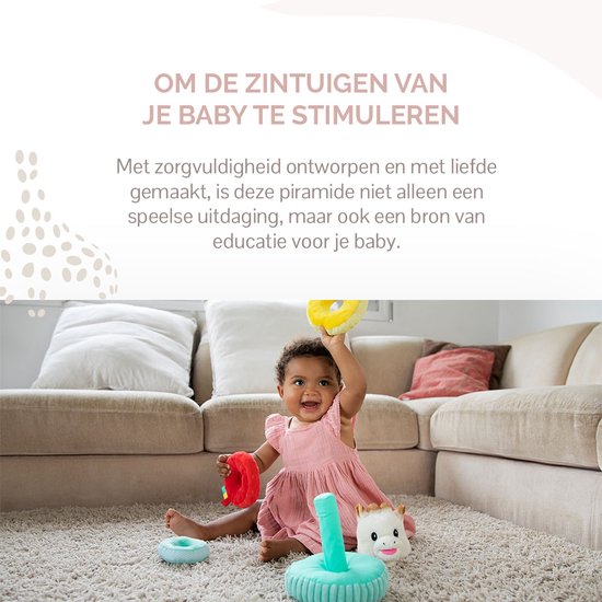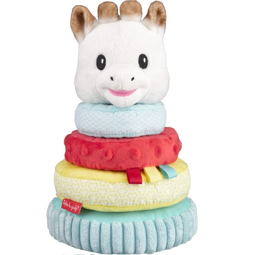 Een schattige Sophie de giraf piramide om de zintuigen van baby te stimuleren!