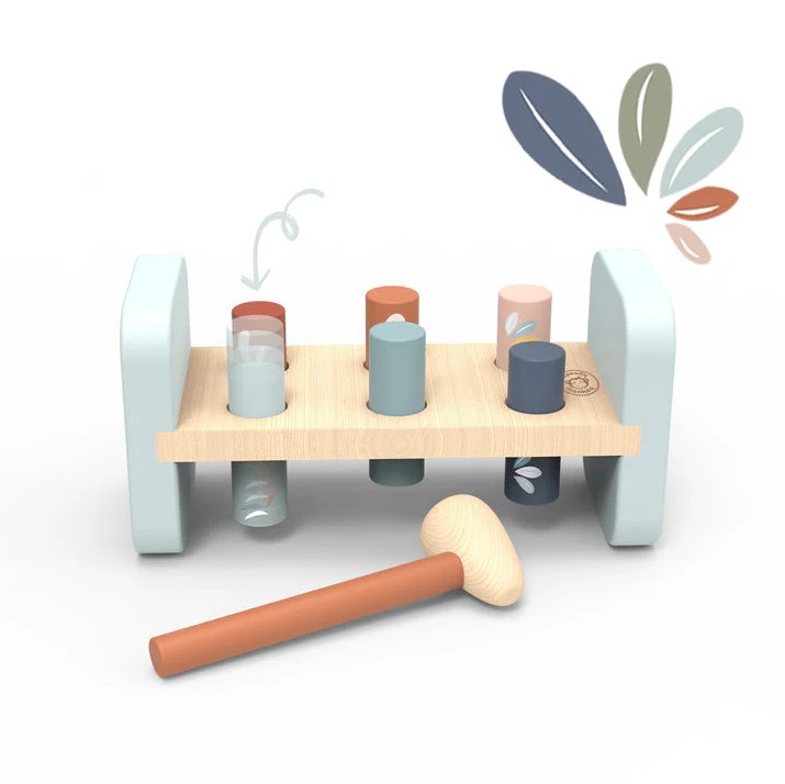 Deze houten hamerbank helpt de hand-oogcoördinatie te ontwikkelen terwijl je kind plezier heeft. Je kind kan de zes kleu