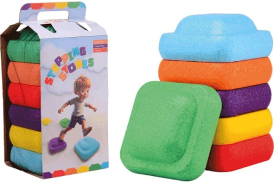 Set van 6 stapstenen van schuim, in verschillende kleuren.