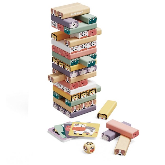 Ontdek de TOP BRIGHT schommeltoren, een educatief spel dat plezier en leren combineert. Kinderen hebben plezier met het bouwen van torens met behulp van kleurrijke houten blokken met dierenmotieven, terwijl ze hun creativiteit, geduld en coördinatie ontwi