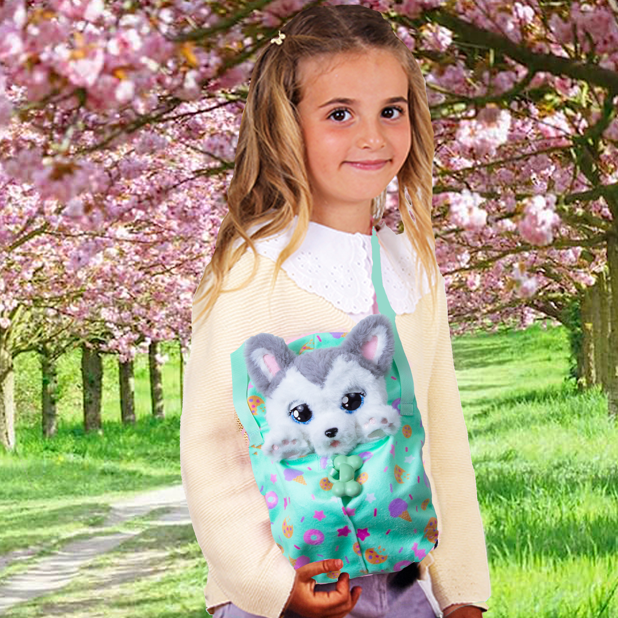 Baby Paws Husky is een schattig grijs hondje met een superzachte vacht, waardoor het net een echt hondje is! Husky ligt heerlijk te slapen in een groen dekentje met leuke bedrukking. Met een speentje in de mond en de ogen gesloten. Maak het dekentje op