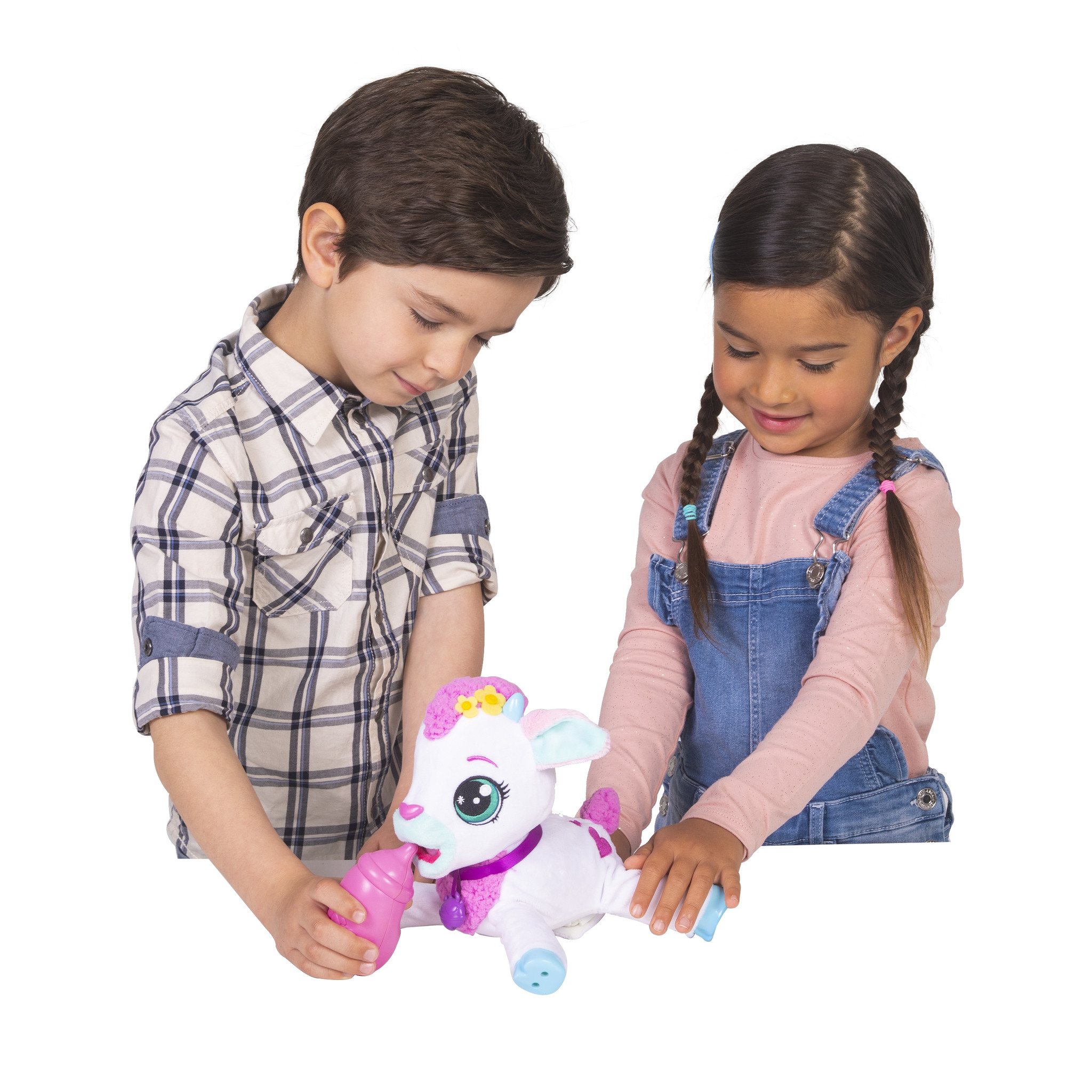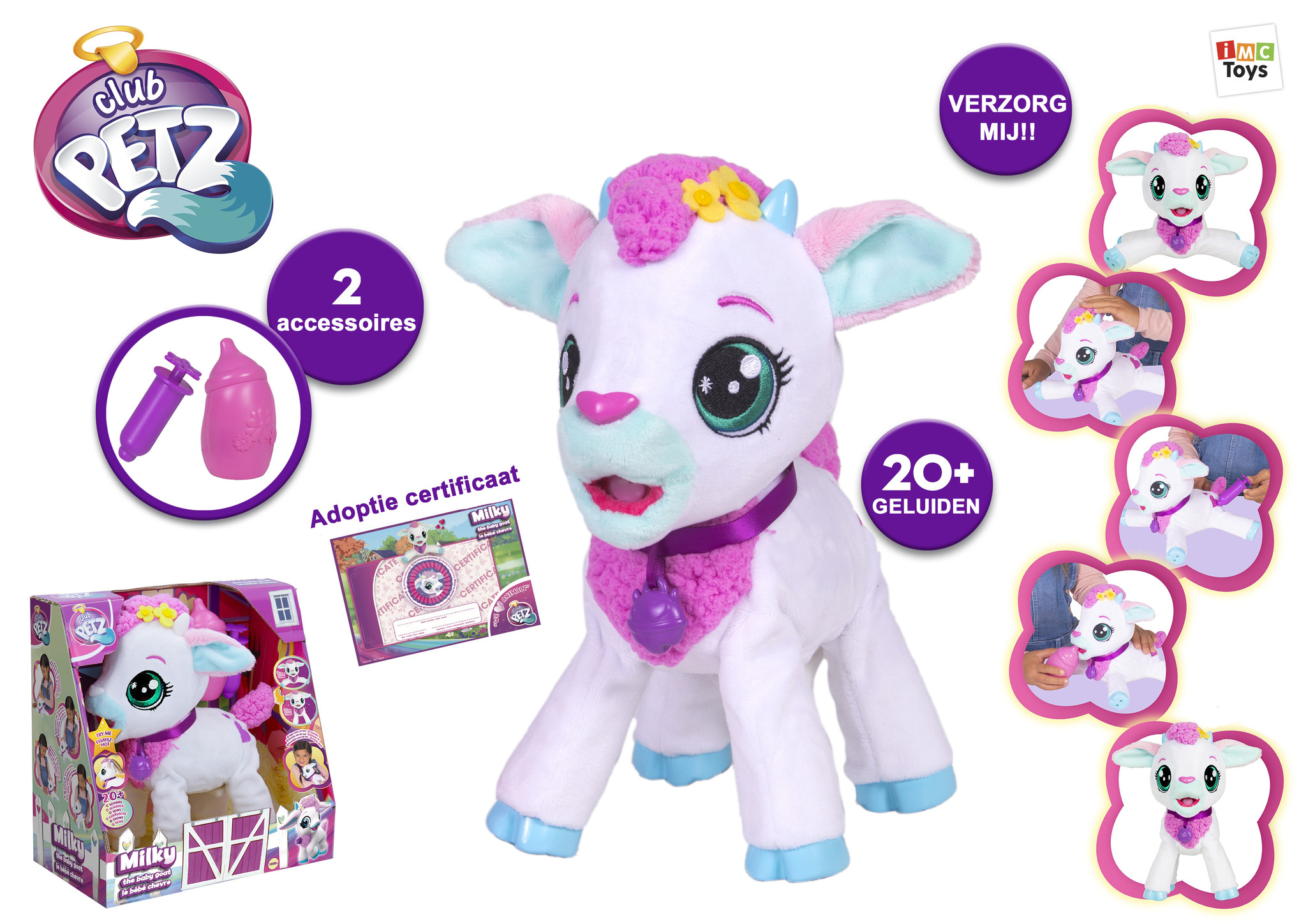 Milky is een schattig klein geitje dat net is geboren en graag door jou verzorgd wil worden! Nog klein als ze is, ligt ze languit op de grond, maar zodra je haar voert met haar fles, zal ze schattige geluidjes maken en gaan staan. Ze maakt ook allerlei ge