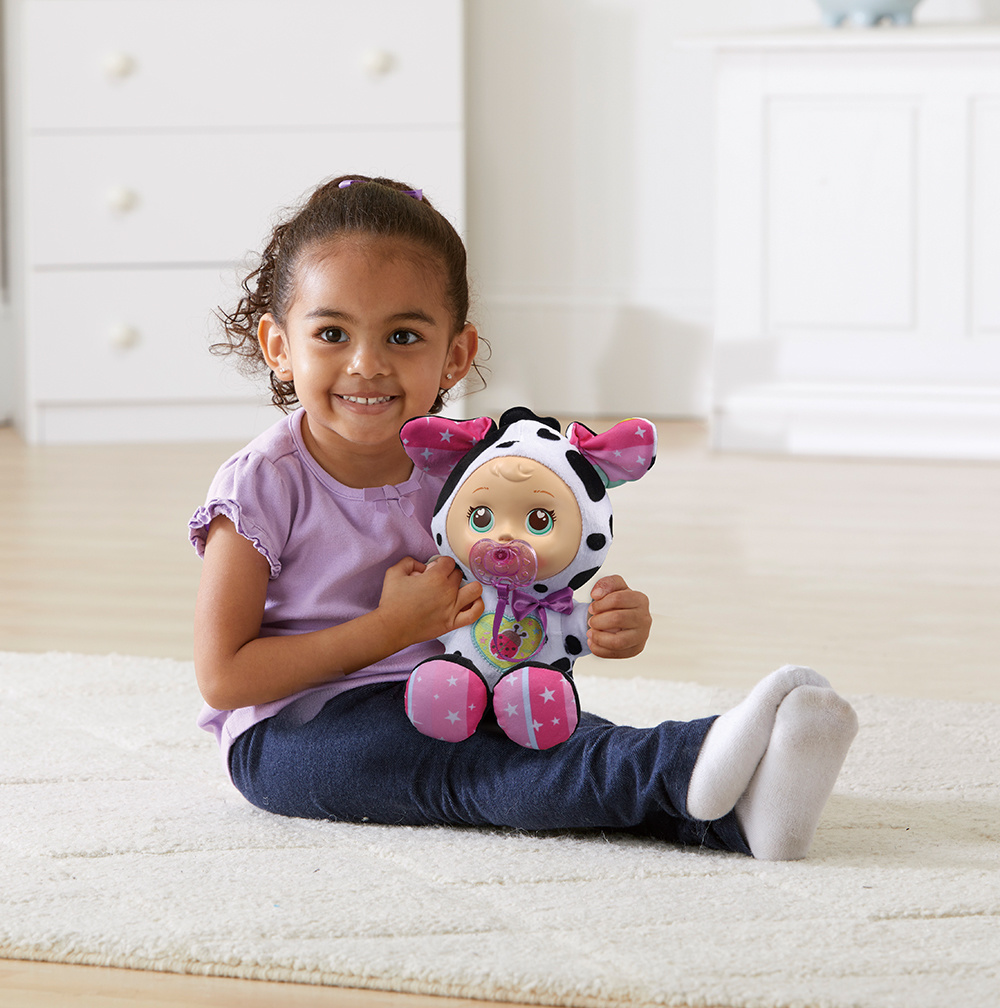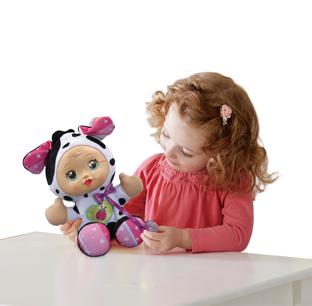 Knuffel met de dalmatiërpop en plaats de fopspeen in haar mond om haar gerust te stellen. Ze vertelt je waar ze dol op is en neemt je mee op avontuur. Druk op de knipperende hart-toets om vrolijke reacties en gezongen liedjes te activeren.