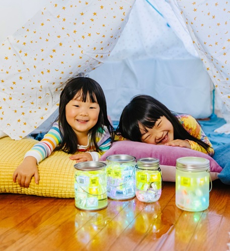 Hoe zorg je voor Glo Pals? Haal de Glo Pals Light-Up Cubes uit de vloeistof wanneer het speelplezier voorbij is. Blaas door de kleine gleufjes aan de zijkant van elke kubus om ze te drogen. Bewaar de Light-Up Cubes op een droge plaats voor een langere levensduur van de batterij, zodat Pippa altijd klaar is om te stralen!
