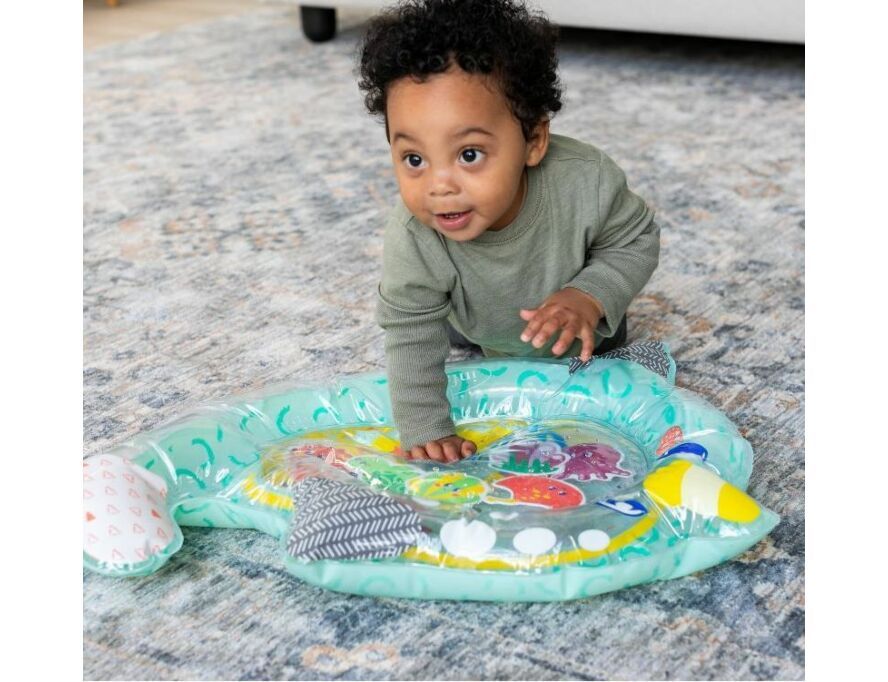 Deze vrolijke speelmat is van het merk Infantino. Deze mat in de vorm van een walvis bevat 6 verschillende waterdieren die je kindje kan ontdekken. Je kan de mat vullen met water waardoor het lijkt alsof de dieren zwemmen hierdoor heeft je kindje waterpre