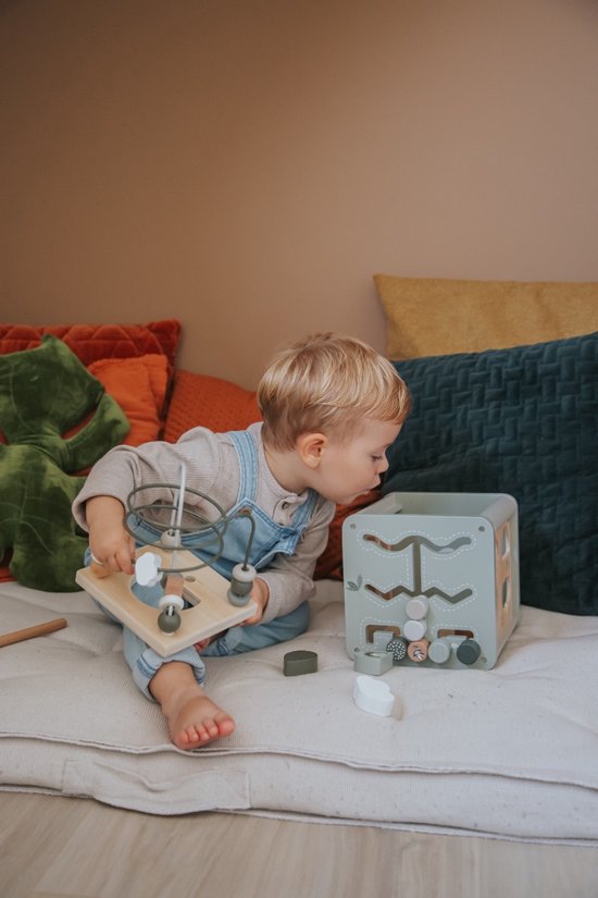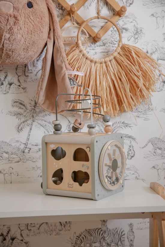 Een vormenstoof, xylofoon, draairad, schuifpuzzel én kralenspiraal, deze 5 in 1 activiteitenkubus van Label Label heeft het allemaal en mag zeker niet ontbreken in de speelhoek van jouw kleintje.