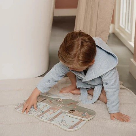 Lekker spelen in bad met deze vrolijke foam puzzel van Little Dutch! Bestaande uit 6 stukken die samen een tavereel vormen uit het Forest Friends thema. De stukjes zijn gemaakt van foam. Maak ze nat en plak ze op de badrand of op de tegels! Handig verpakt in een opbergzakje met zuignappen. Geschikt voor kinderen vanaf 10maanden.