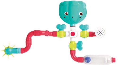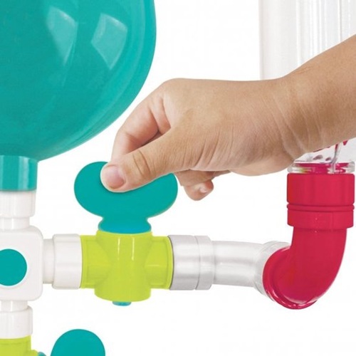 Wanneer het kind het water in de tank giet en de kranen opent, wordt het hele circuit geactiveerd! Galoppin het kleine duikende konijn geeft de richting van het stromende water aan …