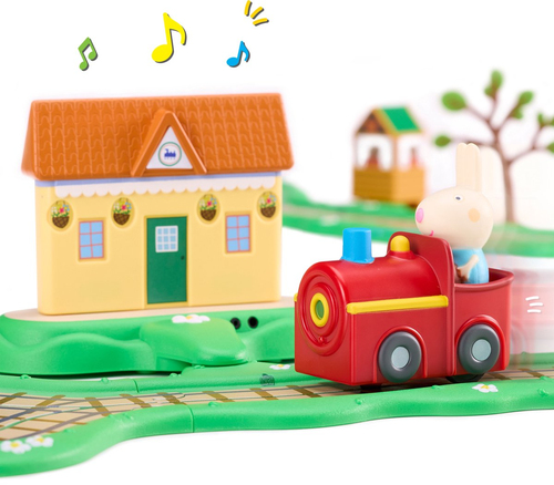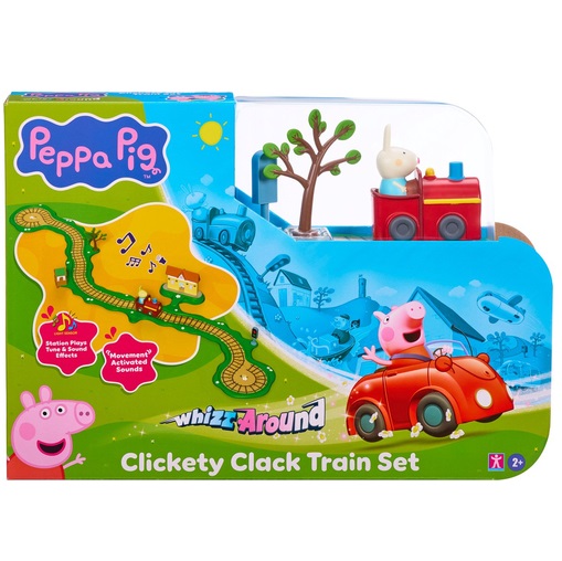 Stap in de wereld van Peppa Big met deze interactieve Klik-Klak Trein Speelset. Bouw helemaal zelf een leuke en kleurrijke rijbaan met de bijgeleverde rechte stukken, bochten en accessoires, zodat Rebecca eindeloos rondjes kan rijden over het spoor. Combineer de stukken tot één grote baan – en het speelplezier kan beginnen! In deze set vind je Rebecca’s Kleine Rode Trein: tjoek tjoek! Het voertuig is batterij-aangedreven en is eenvoudig te bedienen. Eenmaal geactiveerd rijdt ze zelfstandig over de rails, voor eindeloos speelplezier. Maak deze Klik-Klak Treinset compleet met de meegeleverde accessoires, zoals Meneer Stiers Seinhuisje, een stoplicht, boom en het interactieve Treinstation! Want het wordt nóg leuker: wanneer het voertuig voorbij het Treinstation rijdt, hoor je automatisch geluidseffecten zoals het vrolijke Peppa Big themalied en andere grappige geluidjes die het spel helemaal tot leven brengen.