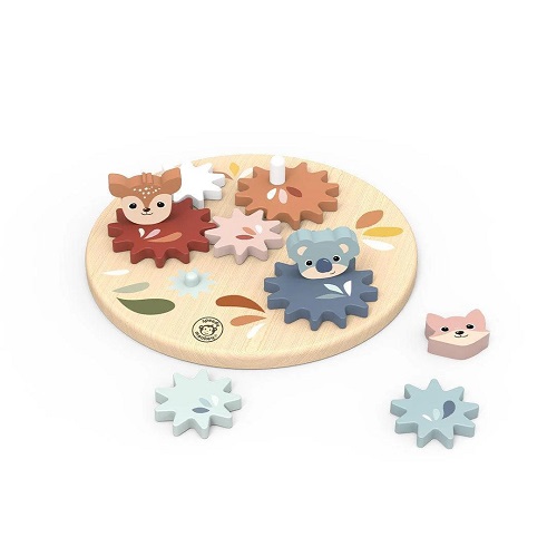 Terwijl kleine handjes ontdekken hoe elk tandwiel draait en in elkaar zit, ontwikkelen ze ook essentiële vaardigheden zoals hand-oogcoördinatie, fijne motoriek en beginnend probleemoplossend vermogen. Of je de tandwielen nu rangschikt op vorm, kleur of patroon, je kleintje zal er plezier in hebben om het hele bord tot leven te brengen.