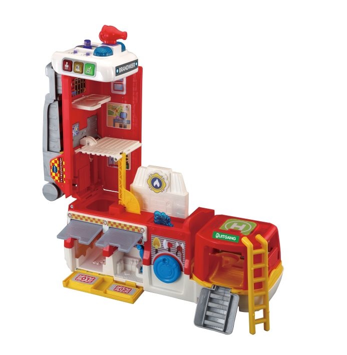Bij brand of gevaar staan de Vrolijke Vriendjes klaar! Deze stoere brandweerwagen kan omgetoverd worden naar een brandweerkazerne. Speel rollenspellen en gebruik de ladder en het waterkanon tijdens verschillende reddingsmissies. Plaats Bob, Benthe of een ander Vrolijk Vriendje (apart verkrijgbaar) op het Magic Point om vrolijke reacties en gezongen liedjes te horen. Druk op de 3 knipperende toetsen en maak kennis met leuke weetjes over de brandweer. Inclusief Bob, Benthe, helikopter, mini-brandweerwagen en afneembare ladder.