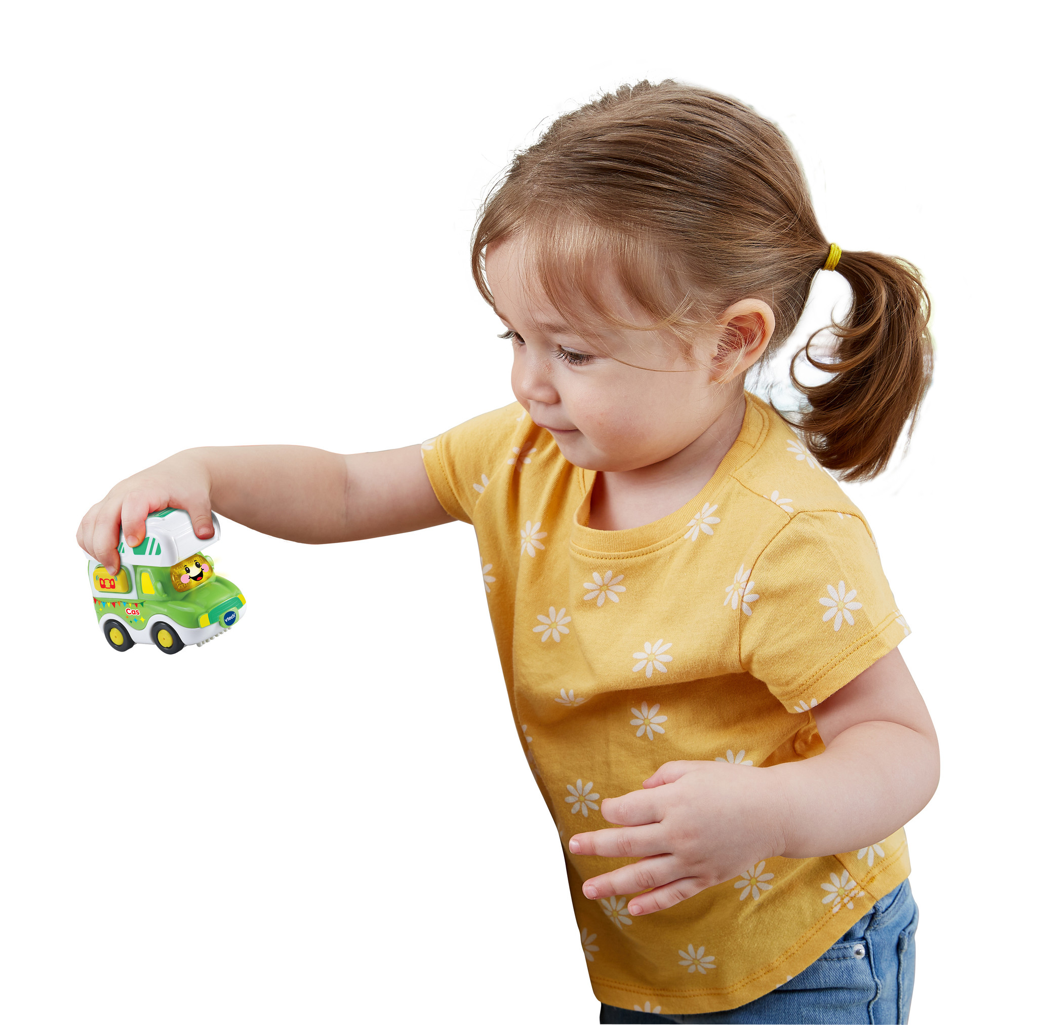 Verzamel alle voertuigen uit de Toet Toet Auto’s collectie! Druk op de knipperende gezicht-toets om geluidseffecten, vrolijke zinnetjes en gezongen liedjes te horen. Druk op de actie-toets om de deuren te openen en grappige geluidjes te horen. Kom en g