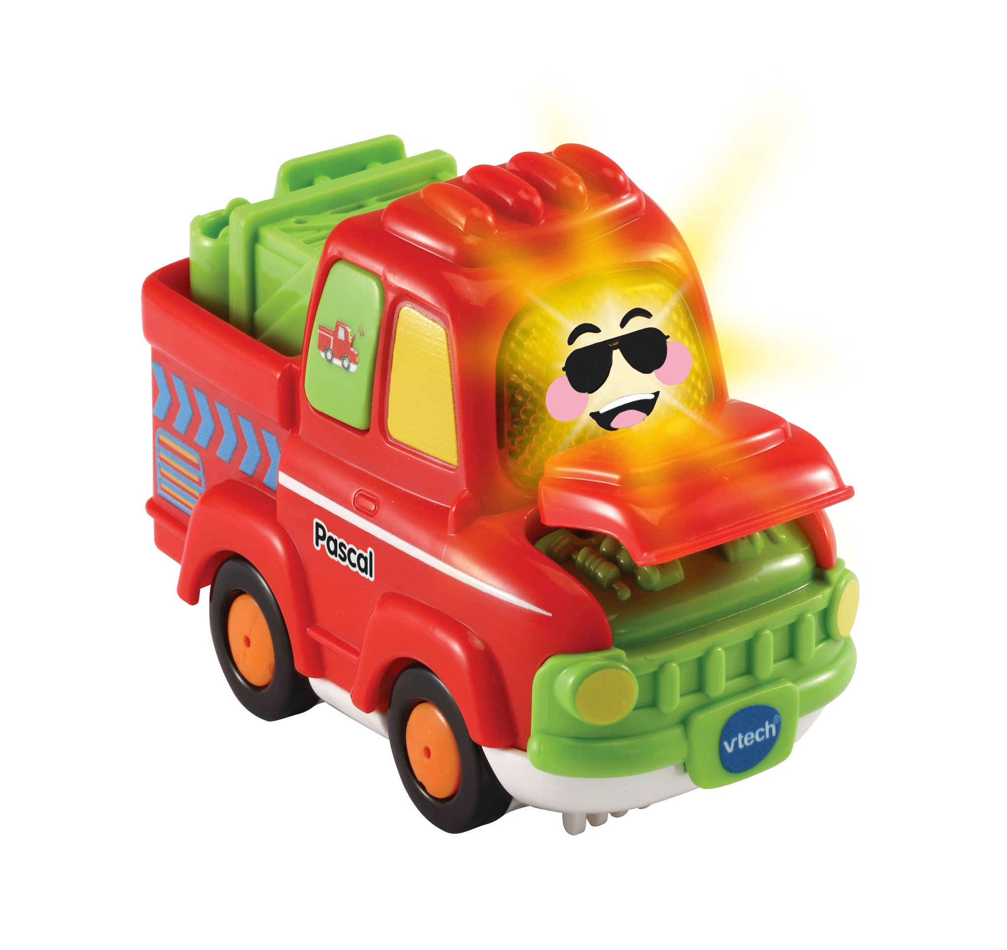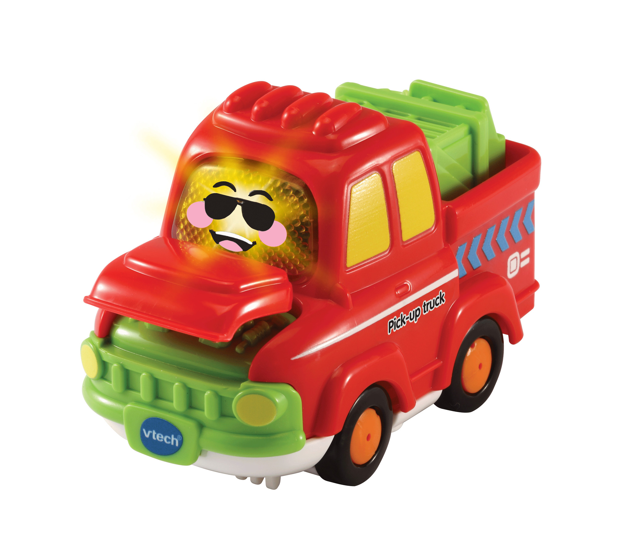 Verzamel alle voertuigen uit de Toet Toet Auto’s collectie! Druk op de knipperende gezicht-toets om geluidseffecten, vrolijke zinnetjes en gezongen liedjes te horen. Druk op de actie-toets om de motorkap te openen en grappige geluidjes te horen. Kom en ga