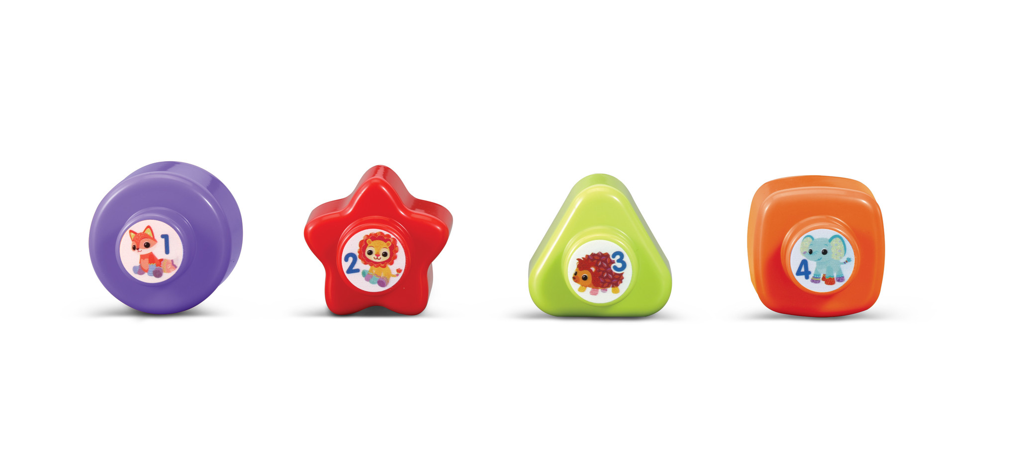 Druk op de knipperende toets om grappige geluiden, vrolijke zinnetjes, gezongen liedjes en melodietjes te horen. Plaats de vormpjes in de juiste openingen en maak kennis met de diertjes én leer cijfers, tellen en vormen. Laten we een ritje maken!