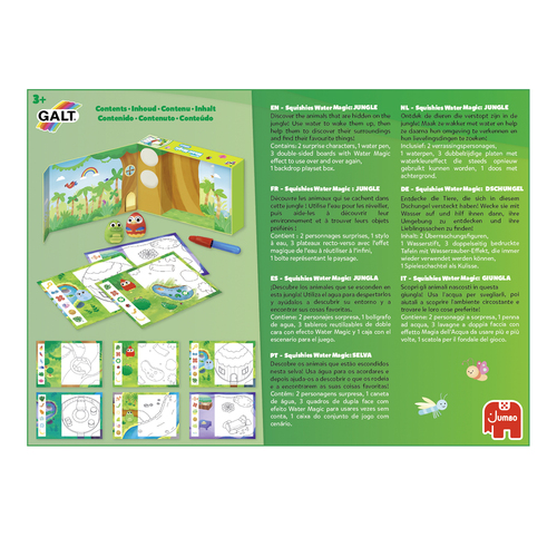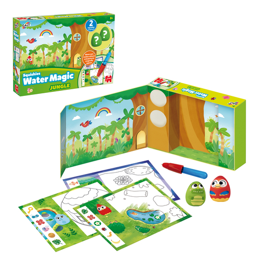 Ga op een wild avontuur met Squishies Water Magic Jungle!Verken het hart van de jungle met de Squishies Water Magic Jungle speelset! Kinderen zullen kleurrijke illustraties en verborgen verrassingen ontdekken. Met de speciale waterpen kunnen jonge ontdekk