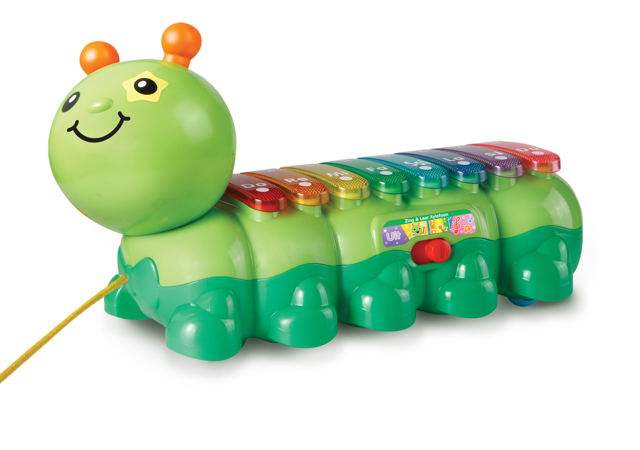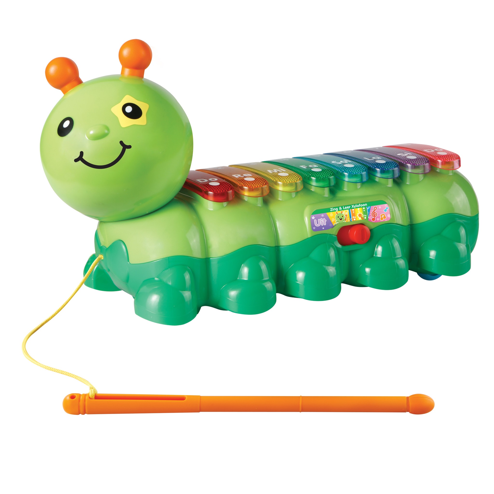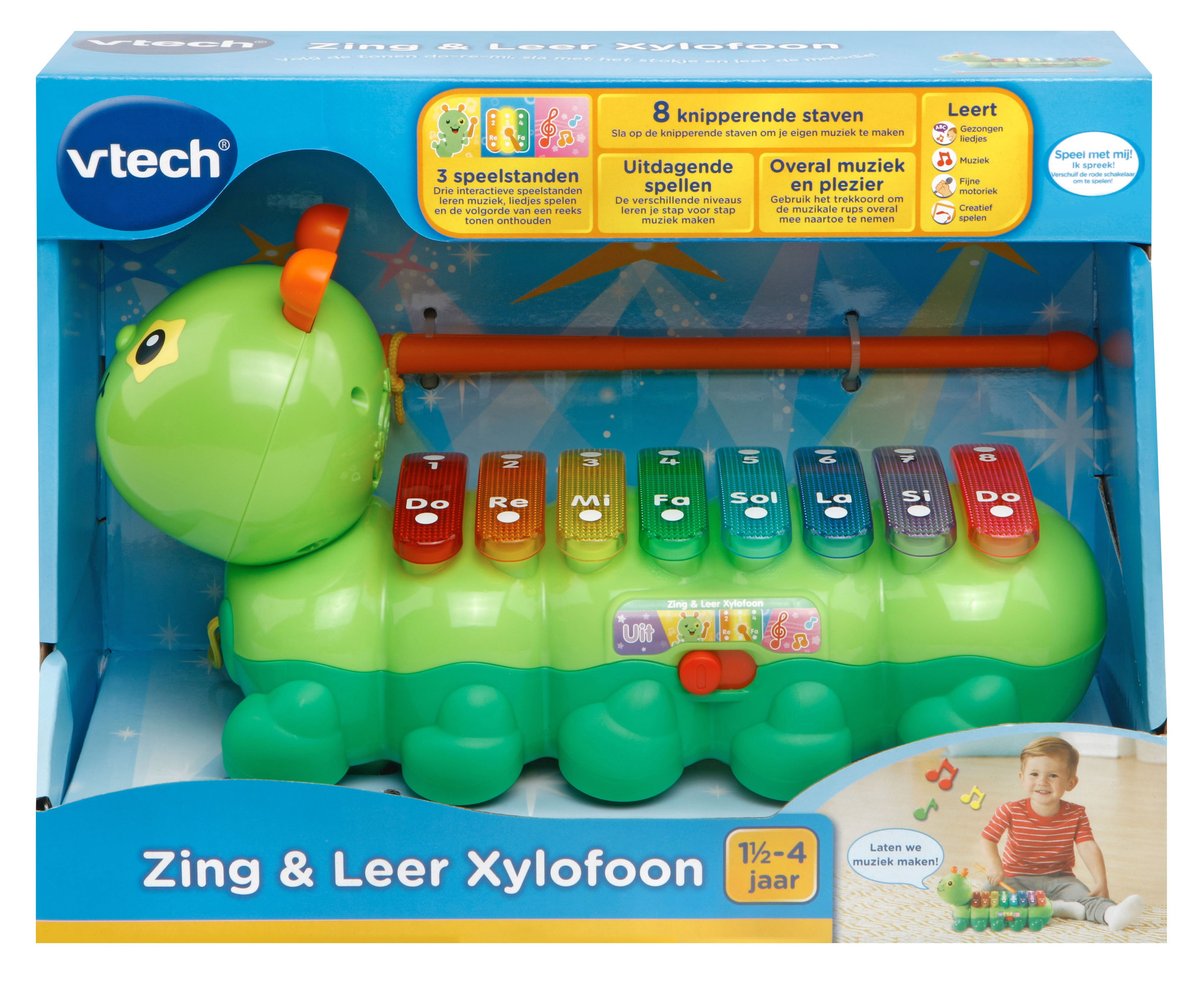 Pak het stokje en sla op de staven om je eigen muziek te maken of volg de knipperende lichtjes om 8 vrolijke melodietjes te leren spelen. Gebruik het trekkoord om deze muzikale rups overal mee naartoe te nemen.